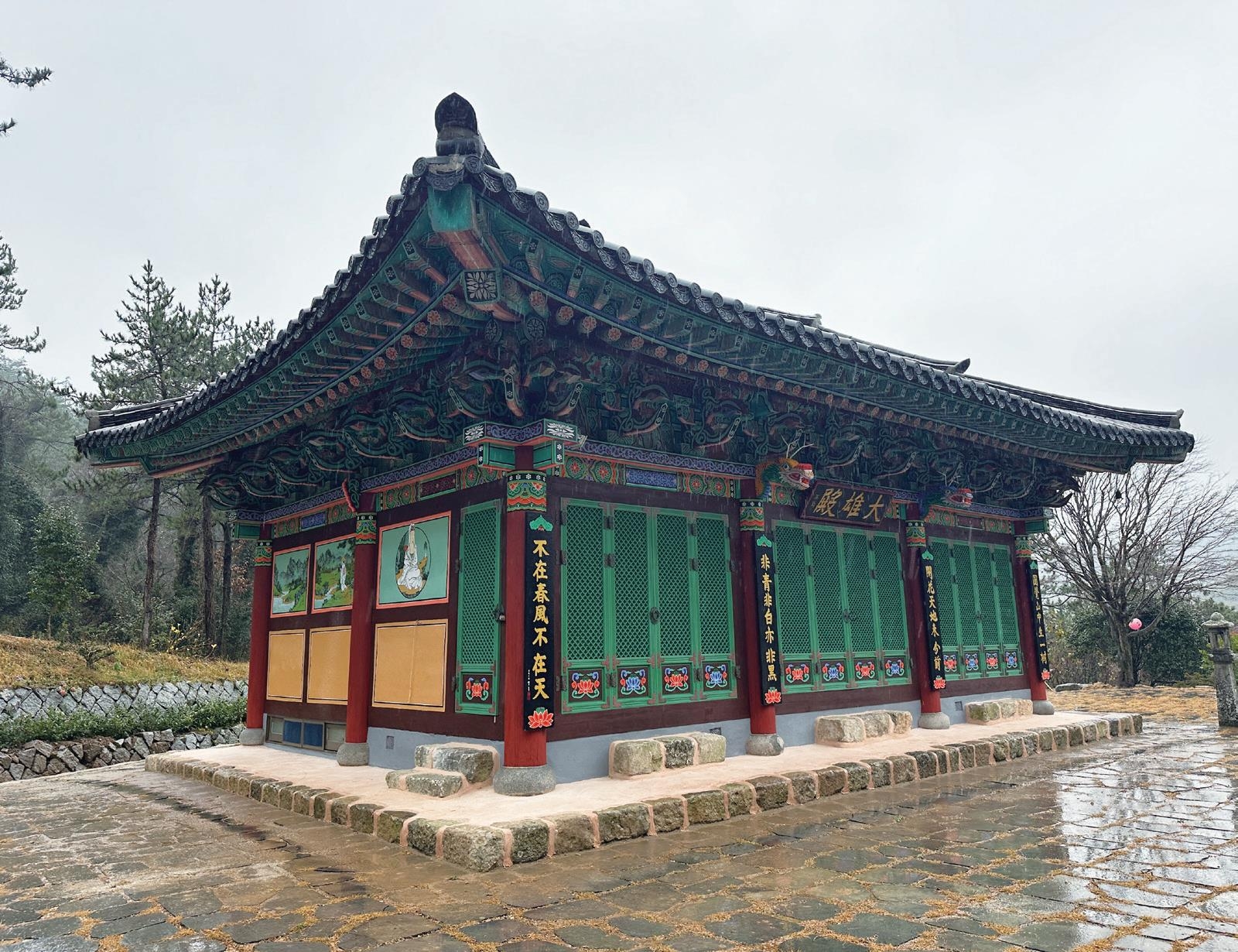 근래에 중창된 대웅전은 정면 3칸, 측면 2칸의 팔작지붕 건물이며 아래쪽에 요사채 2동이 있다. 대웅전 앞에는 2기 석등이 있고, 절 입구에는 2기의 공덕비가 있다.